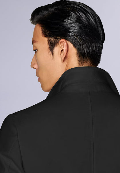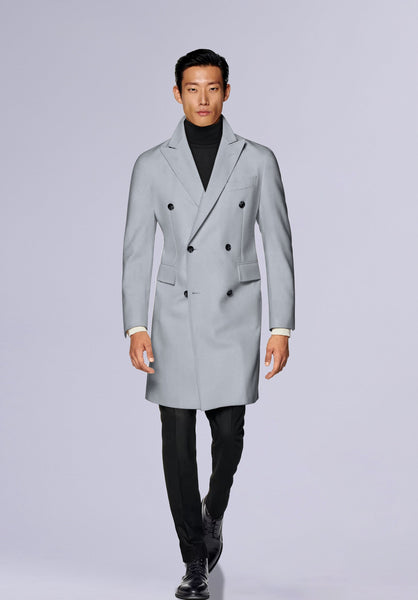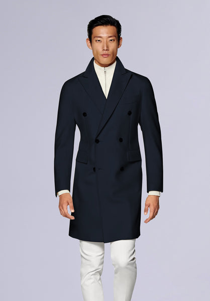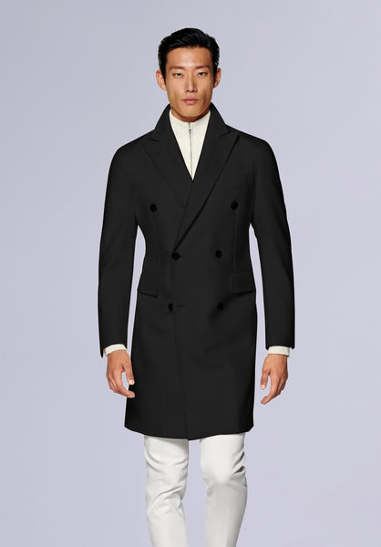 Product Description Crafted from lightweight premium wool, this impeccably tailored top coat features an elevated silhouette with structured shoulders, a tonal button closure, and slim peak lapels.